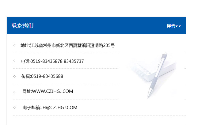 地址:常州市新北區友邦商務大廈1幢16、17層  電話:0519-85101652  傳真:0519-85112595  郵編:213022  網址:www.cz-jiayue_cn.gdys666.com  郵箱:xiajifengaa@163.com